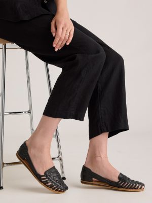 Fashioneco Black Huarache Flat Shoes