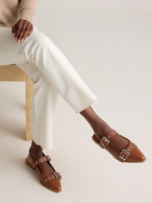 Fashioneco Cognac Bold Buckle Slingback Flat